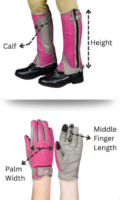 Use the sizing diagrams on this page to measure your child's lower leg and hand.